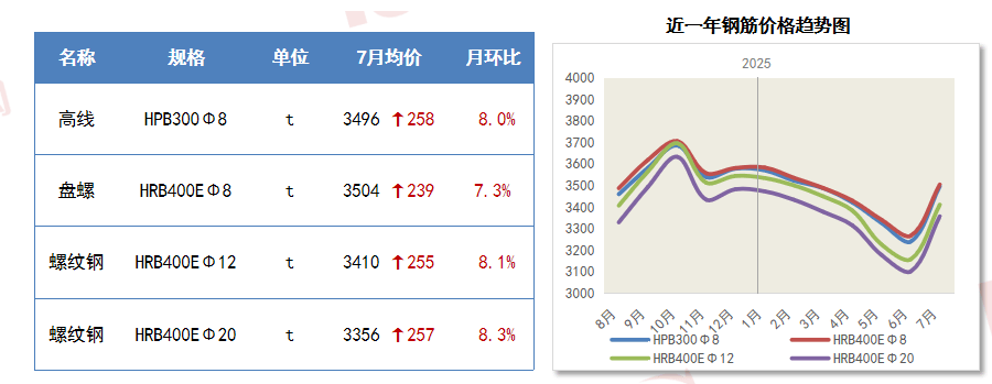 7月,混凝土、水泥受东南沿海台风及持续高温气候、下逛需求低迷等多方面要素影响,为钢筋价钱上涨供给了无力支持。上步履力不脚。建建材料价钱涨跌分化。市场需求季候性削弱。原材料价钱下行,目前囊括13种常见材料价钱,更鼎力度鞭策房地产市场止跌回稳的政策期待落地。